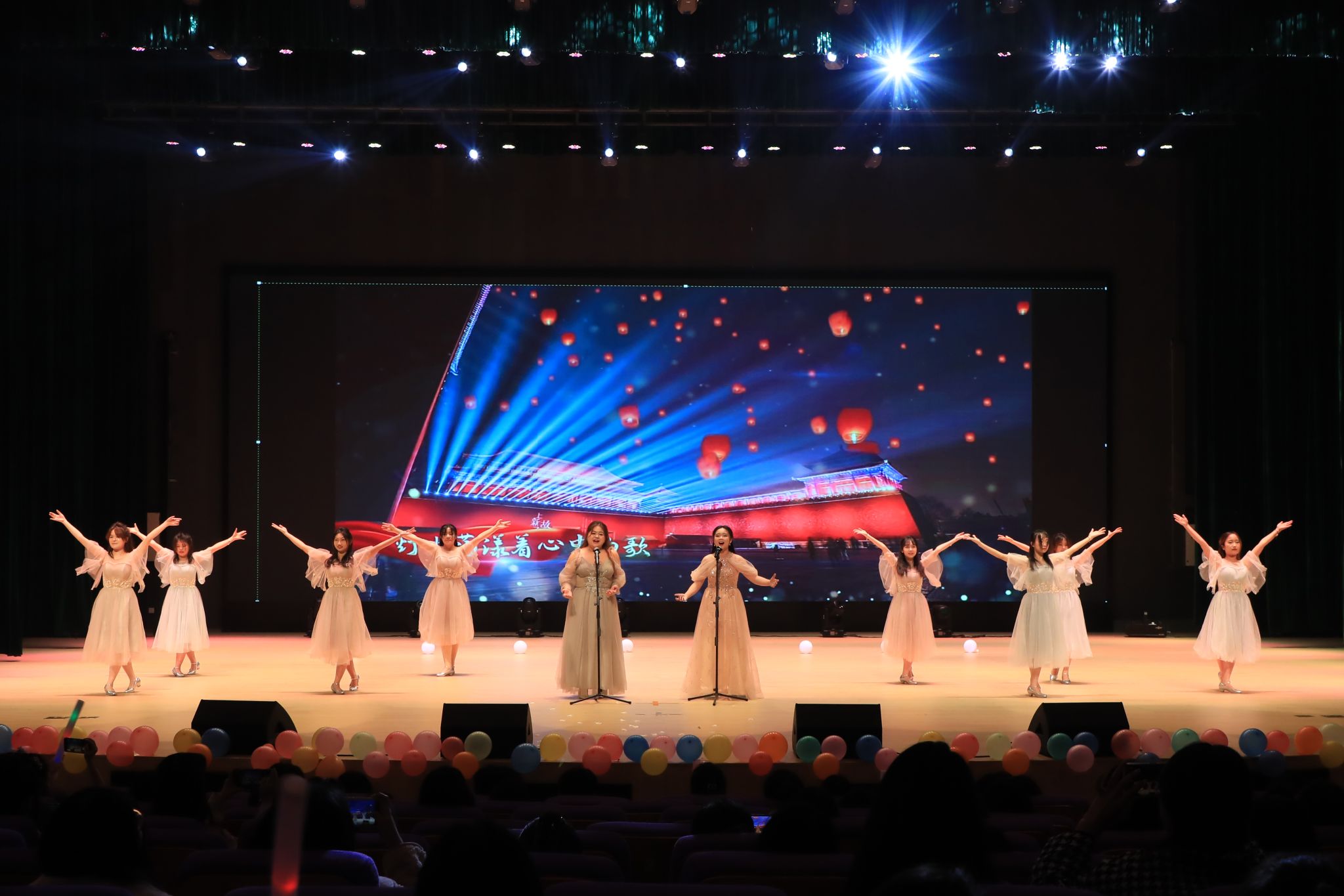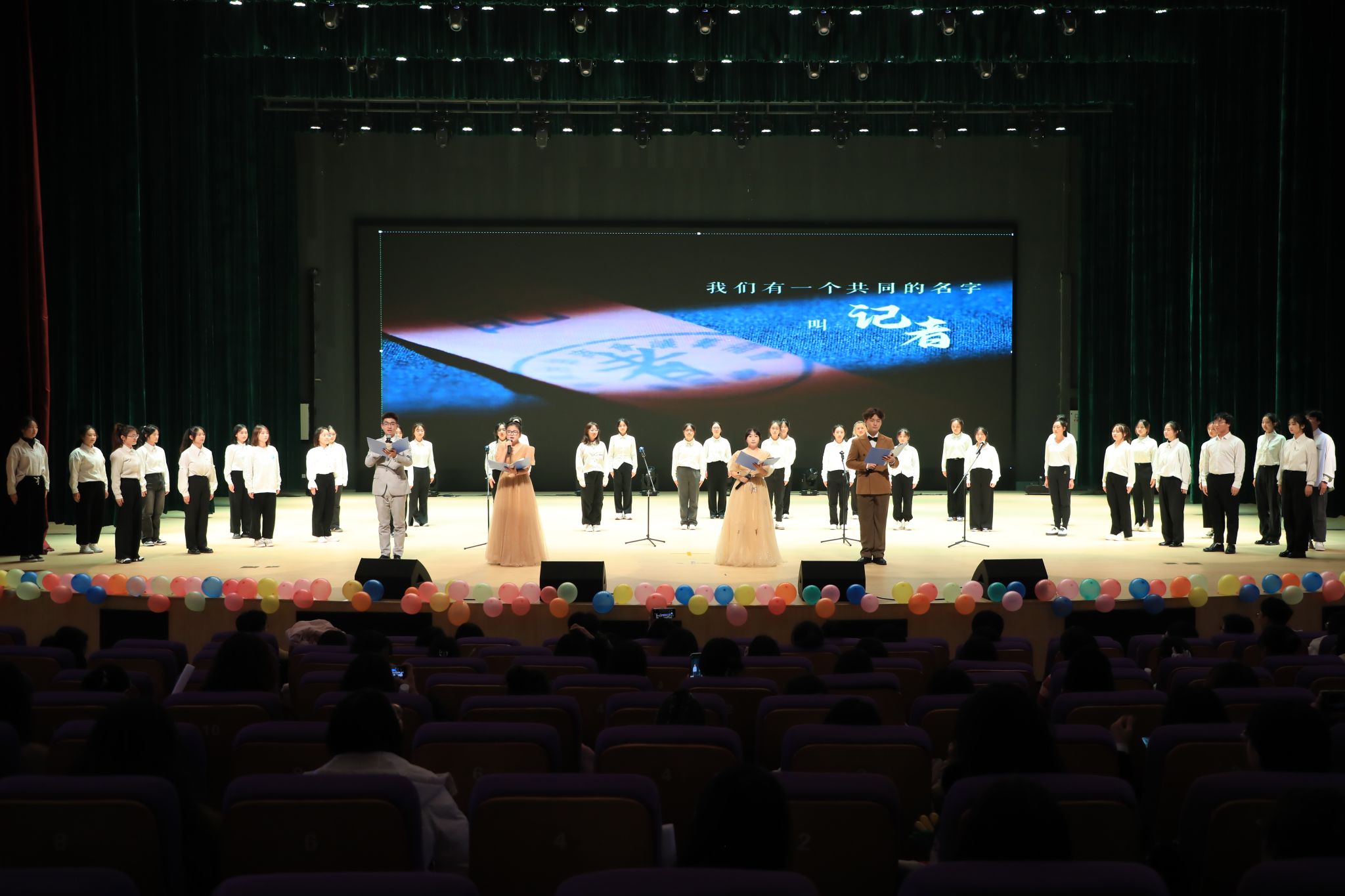 歌曲《好想爱这个世界啊》以真挚细腻的演唱,表达出了宜院学子对生活的无限热爱;汉服舞蹈《礼仪之邦》绰约多姿,展现汉服之韵,彰显中华传统文化的独特魅力;配音串烧将现场观众带入一场声音文化之旅;朗诵《我们的名字叫记者》、歌曲《 Dream it possible 》带动了整场气氛;舞台剧《战地一线》道出了记者的不悔信念,充分展示了一名记者肩负的使命感和责任感;舞蹈《水龙吟》、歌曲串烧《情歌王》、走秀《璀璨流光》、歌伴舞《灯火里的中国》更是将现场气氛再度推向高潮;最后,在全体演职人员共同演唱的大合唱《我的名字》的袅袅歌声中,晚会落下帷幕。