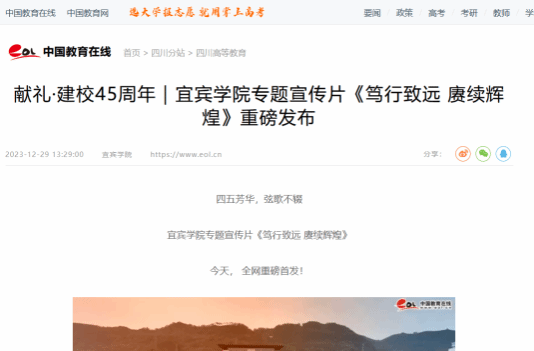 1.献礼·建校45周年| 宜宾学院专题宣传片《笃行致远 赓续辉煌》重磅发布