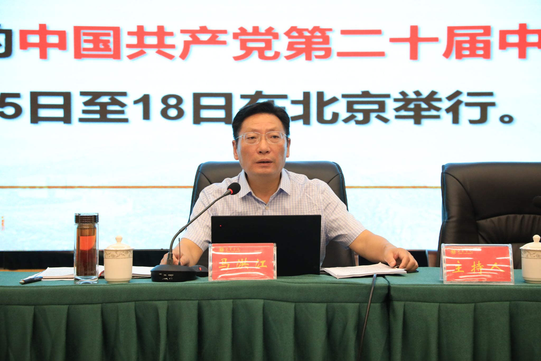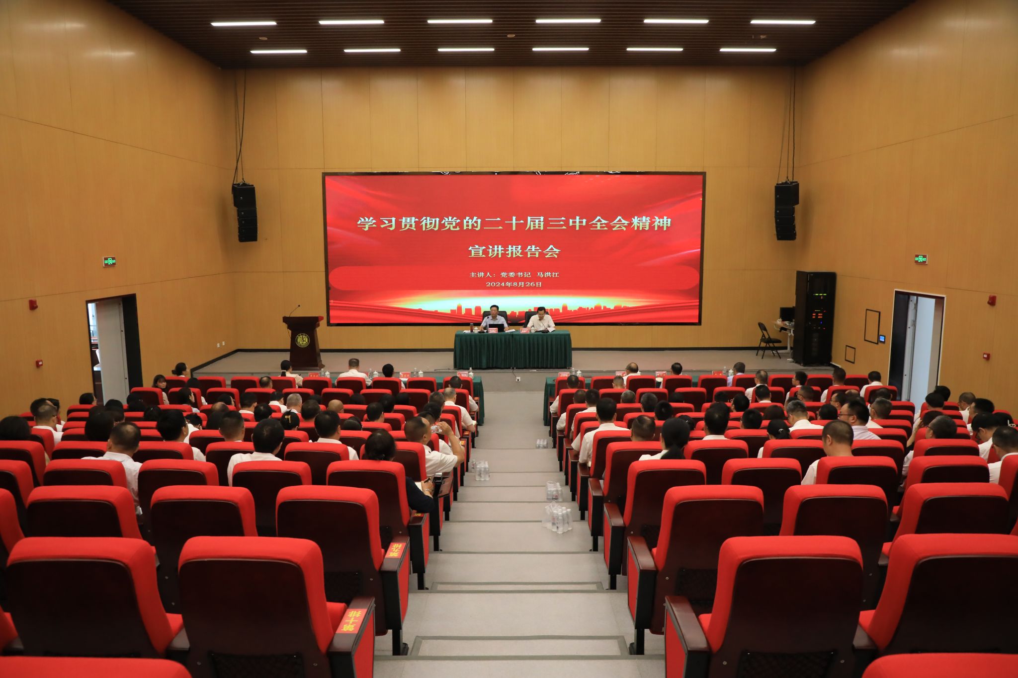 8月26日上午,宜宾学院在临港校区求实会堂召开党委理论学习中心组扩大会专题宣讲党的二十届三中全会精神。学校党委书记马洪江作宣讲报告,党委副书记、院长杜正聪主持宣讲会。全体在家党委常委、校领导,党委委员,副处级以上领导干部参加会议。