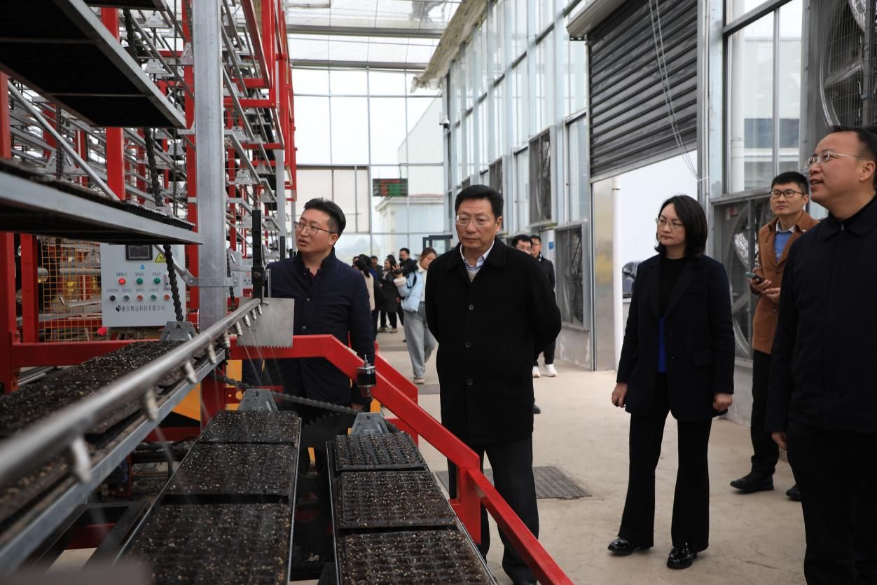 调研组先后前往庆岭镇智能化播种中心与数字化育苗中心,聚焦科技赋能农业领域,对园区总体布局、社会化服务、科技赋能三个方面进行深入实地考察与调研。随后调研组参观了胜天镇安和村流米李现代农业示范园,双方就现代农业示范园因地制宜,发展特色农业产业同乡村振兴紧密结合展开交流,对安和村依托原有流米李产业基础,采取现代化发展模式,实现多点创收有了进一步了解。