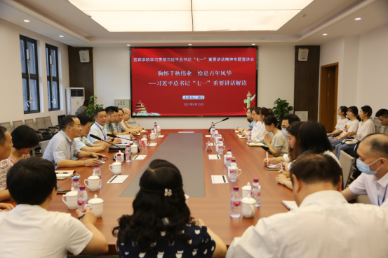 刘宁作题为《胸怀千秋伟业恰是百年风华——习近平总书记“七一”重要讲话解读》的专题宣讲。他围绕一个序言、“百年奋斗的光辉历程和伟大成就”“伟大建党精神的深刻内涵和时代价值”“以史为鉴、开创未来的根本要求”三方面系统解读了习近平总书记“七一”重要讲话,针对一个“开天辟地”、三个“深刻改变”、四个“伟大成就”、四个“庄严宣告”、九个“必须”等方面内容做了深刻阐述,并结合生动的现实案例为参会人员作了一场精彩的宣讲报告,让大家受益匪浅。