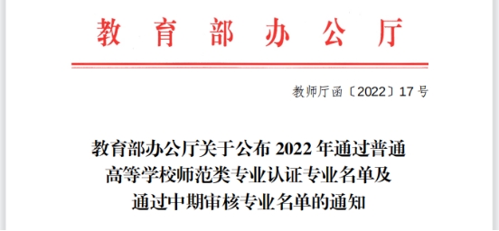近日,教育部办公厅公布了2022年通过普通高等学校师范类专业认证的专业名单,我校生物科学和学前教育两个专业顺利通过第二级认证,认证结论有效期为六年(2022年7月起至2028年6月)。