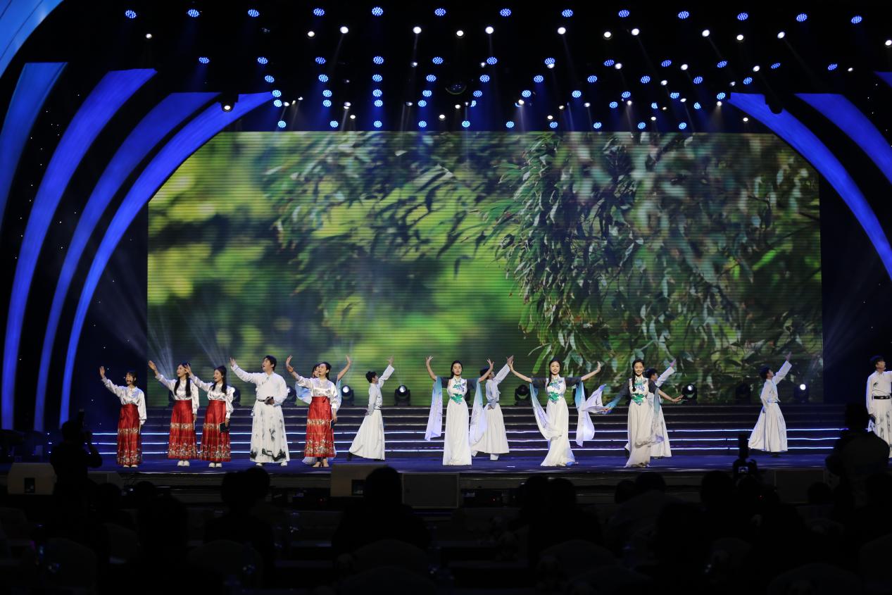 近日,第十一届中国网络视听大会首场活动“神秘蜀韵 百部川扬”网络视听精品传播大赛优秀作品颁奖盛典在四川传媒学院艺体中心成功举办。本次活动由四川省广播电视局、四川省财政厅主办,四川省网络视听协会、四川传媒学院等单位承办,宜宾学院受邀参演,在校团委和文艺学部的大力支持下,邓静老师带领16名学生圆满演绎了苏轼古谱诗乐舞作品《定风波·莫听穿林打叶声》。