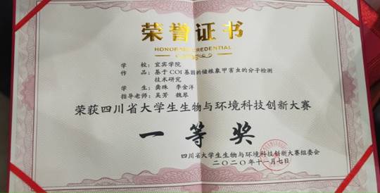 跟随指导老师以科考队队员身份参加第二次青藏高原综合科学考察研究。发表论文《基于COI基因的储粮象甲害虫的分子检测技术研究》(第二作者),项目《基于COI基因的储粮象甲害虫的分子检测技术研究》获四川省大学生“生物与环境科技创新大赛”,四川省一等奖。