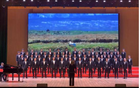 本次大赛共有在宜11所高校派队参加,宜宾学院派出由文学与音乐艺术学部52名同学组成的合唱团参赛。合唱团由文艺学部雷晓兰、孙嘉治老师指导,由丁若馨老师担任指挥,富有艺术韵味的四声部男生合唱,彰显了《天路》的高远辽阔,收到专家领导的高度赞赏。最终宜宾学院获得本次歌咏比赛一等奖第一名。