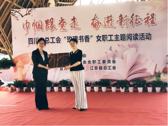 杨剑涛接受了四川省总工会女职工委员会的授牌,由四川省总工会党组成员、经费审查委员会主任、女职工委员会主任徐真彦同志亲自颁发。