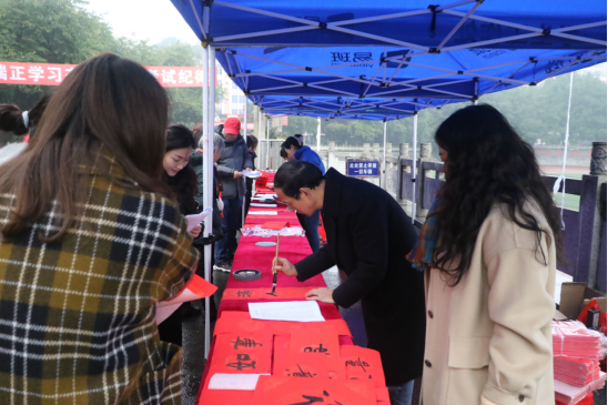 为深入学习宣传贯彻习近平新时代中国特色社会主义思想和党的十九届六中全会精神,弘扬中华优秀传统文化,丰富广大职工精神文化生活,1月10日,由宜宾学院工会、党委宣传部、党委统战部主办,宜宾学院书法美术摄影协会策划并承办的“写福字 送春联”书法公益活动在学校A区举行。