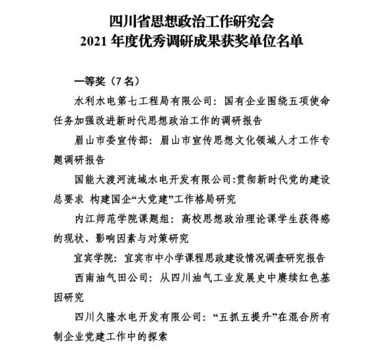 日前,从四川省思想政治工作研究会传来喜讯,宜宾学院教育学部刘伟博士提交的《宜宾市中小学课程思政建设情况调查研究报告》在该研究会2021年度优秀调研成果评选中荣获一等奖(川政研[2022]3号)。