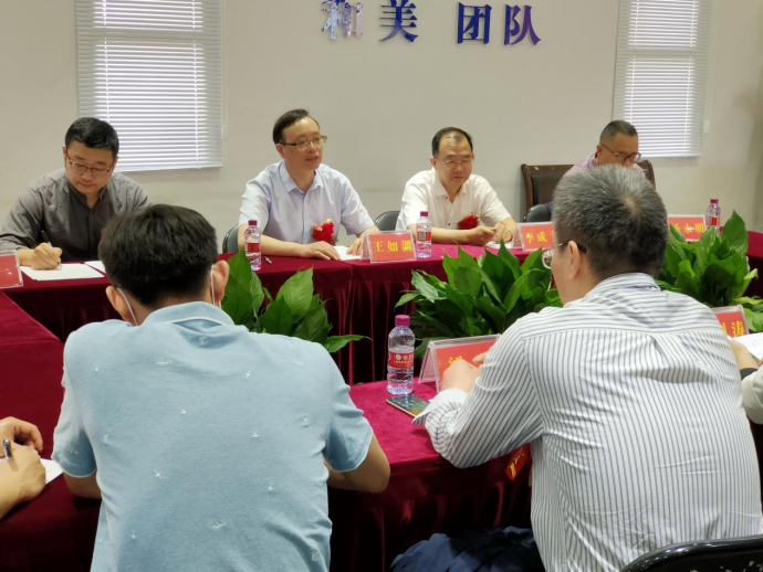 研讨会后,王如渊、李成文来到展陈现场参观,并为本次作品展呈现更好的效果提出自己的意见和建议。