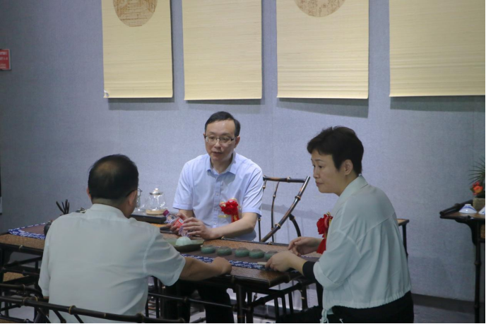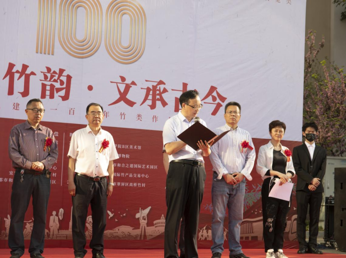 王如渊致开幕辞,他代表学校党委对到场的所有来宾表示热烈的欢迎,对项目顺利开展表示衷心的祝贺。他指出,宜宾学院党委以党建引领转型发展,围绕“党建统揽领航向,凝心聚力育人才”理念,始终坚持“党建统揽”和“立心铸魂”两大工程,围绕高校立德树人根本任务,将党建与科研教研、人才培养、社会服务、文化传承等深度融合。此次“蜀风竹韵·文承古今——礼献建党100周年竹类作品展”,成功立项四川艺术基金2021年度传播交流资助项目,不仅成功实现艺产学部省部级艺术基金课题零的突破,更充分体现党建与业务的深度融合。本次展览展示了传统竹类中的创新产品,展示了产品中的新技术和新工艺,为校政企合作交流搭建新平台,进而促进产品孵化落地和竹传统产业的跨界融合。本次展览的举办,有利于竹类产品品质提升,推动竹产业转型升级,更有利于引导大家坚定文化自信,从而更好地弘扬新时代爱国主义。