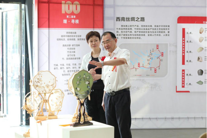 项目负责人、艺产学部部长杨剑涛介绍,本次“蜀风竹韵·文承古今——礼献建党100周年竹类作品展”主要包含“序•初心”“继•寻根”“萌•创新”三个篇章,围绕建党100周年、红色革命文化,结合竹文化、竹材料、竹纹样等要素,通过元素提取、内涵展示、情景再现等方式进行设计创作,组织囊括近100个竹类标本,9大类竹生活用品和近100件竹创意设计。