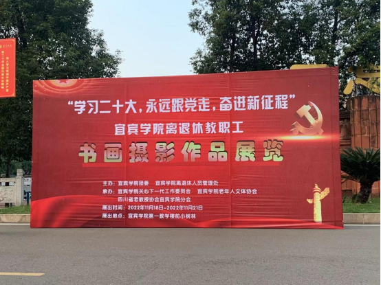 为进一步贯彻落实习近平总书记来川来宜来校视察重要指示精神,积极发挥离退休老教师“为党育人、为国育才”余热,营造良好的校园文化育人环境,11月18日至21日,宜宾学院离退休人员管理处和宜宾学院团委在A区一平台组织了以“学习二十大,永远跟党走,奋进新征程”为主题的离退休教职工书画摄影作品展览。此次活动由宜宾学院关心下一代工作委员会、宜宾学院老年人文体协会、四川省老教授协会宜宾学院分会承办。