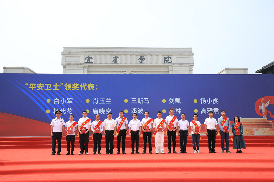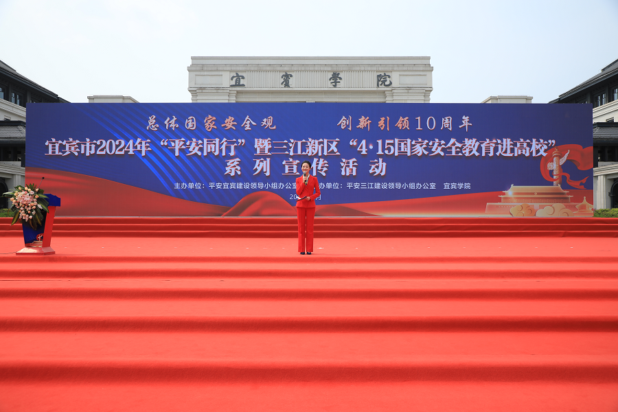 15日下午,宜宾市2024年“平安同行”暨三江新区“4·15国家安全教育进高校”系列宣传活动在我校临港校区一期正大门隆重举行,宜宾市委市政府领导、各区县代表出席活动。大学城兄弟院校齐聚一堂,为筑牢国家安全的钢铁长城建言献策。宜宾学院30名学生代表以活力四射的团体操开场舞点燃了全场热情,共庆“4.15”国家安全教育日。随后以唐晓空、吴俊东为代表的“平安卫士”和“平安志愿者”们走上领奖台,接受表彰和嘉奖。这些获奖者们是学校安全工作的杰出代表,他们长期以来致力于维护校园安全稳定,用实际行动诠释了“平安卫士”和“平安志愿者”的职责和担当。