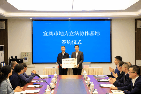 10月10日上午,市人大常委会与宜宾学院签订地方立法协作框架协议,宜宾市首个地方立法协作基地在宜宾学院建立。宜宾学院党委副书记、院长杜正聪,市人大常委会党组副书记、副主任邓前卫,宜宾学院党委常委、副院长周广均出席基地签约仪式。市人大法制委主任委员刘鹏翔主持仪式。