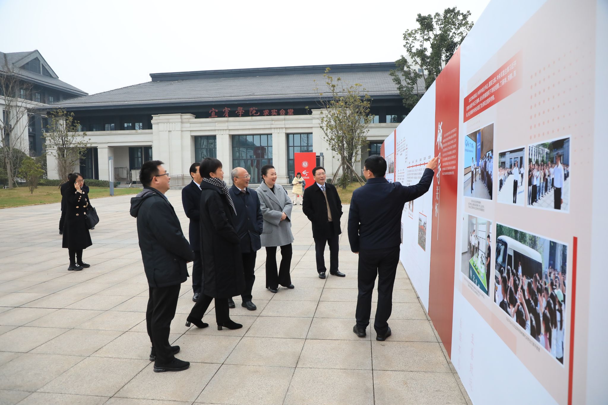 庹先国在会上致辞、何诣然宣读贺信;宜宾学院教师代表彭贵川、校友代表周跃立、学生代表刘颖在会上发言;会议还举行产教融合实训基地展演、宜宾学院服务宜宾市三区七县城乡融合发展启动仪式。会后,与会领导、嘉宾还参观了宜宾学院建校45周年办学成果展。