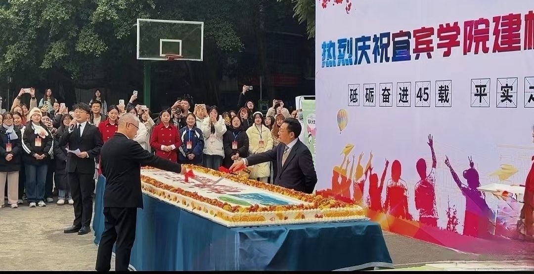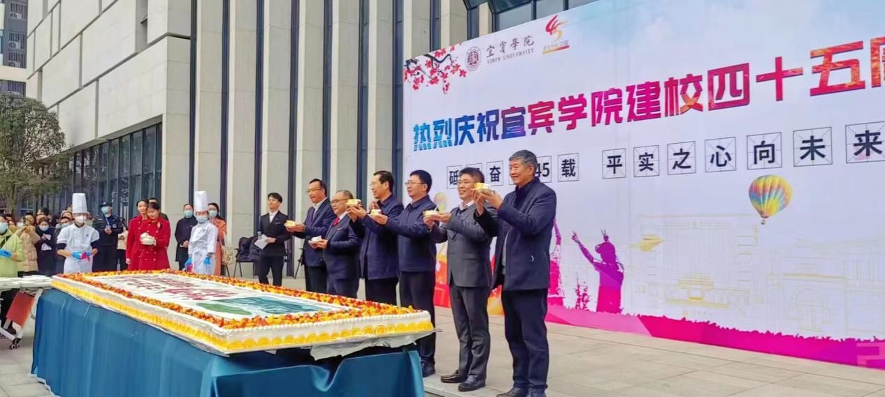 12月28日上午,宜宾学院举办庆祝建校四十五周年校庆蛋糕分享仪式。宜宾学院党委书记马洪江,党委副书记、校长杜正聪,党委副书记蒋道平,党委常委、副校长王藩侯、周广均、王如渊、白玉林,党委常委、党委统战部长华曦等出席。
