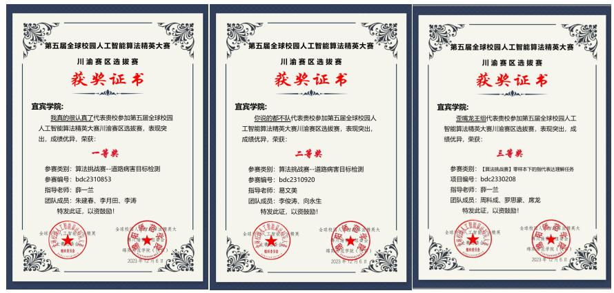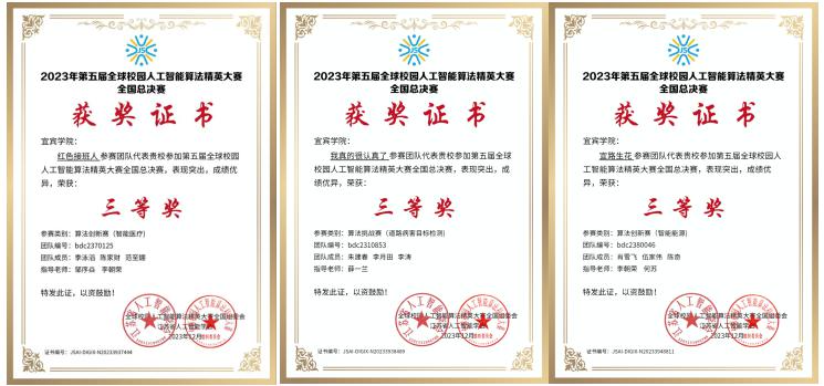 12月21日,由江苏省人工智能学会主办的2023年第五届全球校园人工智能算法精英赛顺利结束,该比赛今年首次升级国家级A类竞赛,包含算法挑战赛、算法创新赛等5个赛道。在学部师生共同努力下,人工智能与大数据学部共组织17支队伍49名学生报名参赛,共取得国赛三等奖三项,省赛一等奖两项,省赛二等奖四项,省赛三等奖一项。
