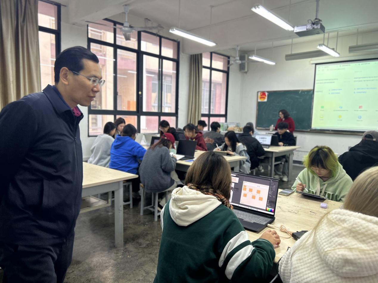 为推动各校区协同内涵式高质量发展,近日,党委副书记、院长杜正聪到艺术与产品设计学部调研指导工作,在学部党政班子成员的陪同下,先后查看了B区行政办公楼、教学楼及特色工作室等地,对现有办公环境、教学情况、校园安全等方面进行了深入调研。