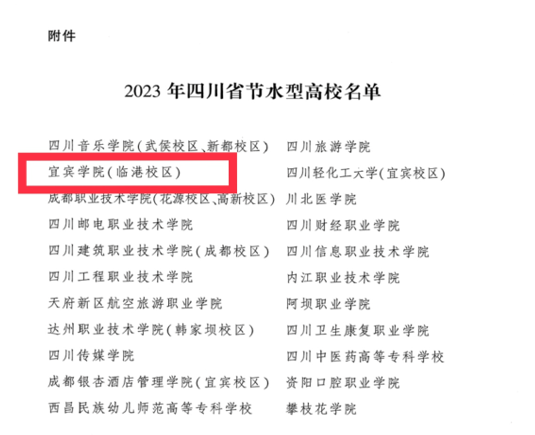 近日,省水利厅、教育厅、机关事务局联合发文,公布了2023年度四川省节水型高校名单,宜宾学院临港校区榜上有名。