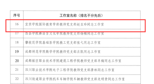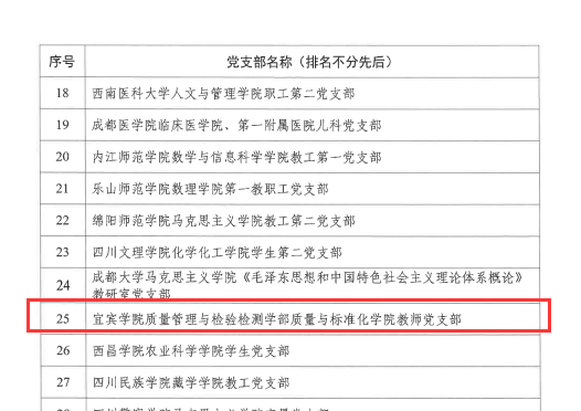 2023年7月,四川省委教育工委组织开展了第二批新时代四川高校党建示范创建和质量创优(简称“双创”)工作。近日,经资格审查、专家团队评审、厅内综合评定和征求意见、工委会集中审议、结果公示等环节,宜宾学院质量与检验检测学部质量与标准化学院教师党支部立项为第二批“四川高校党建工作样板支部”培育单位,国际教育学部教师党支部赵亚玲同志工作室立项为第二批四川高校“双带头人”教师党支部书记工作室培育单位。