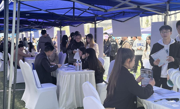 宣介会后,宜宾发展控股集团有限公司、宜宾市新兴产业投资集团有限公司、宜宾天原科创设计有限公司、宜宾光原锂电材料有限公司等150余家优质企业在足球场举办了春季双选会。双选会提供了500余类职位、超3000人招聘需求,4000余名学生现场参加。双选会同步开启“直播带岗”,线上直播观看数量超50000余人次,线上、线下累计收集应聘简历5000余份,现场达成初步就业意向1700余人。