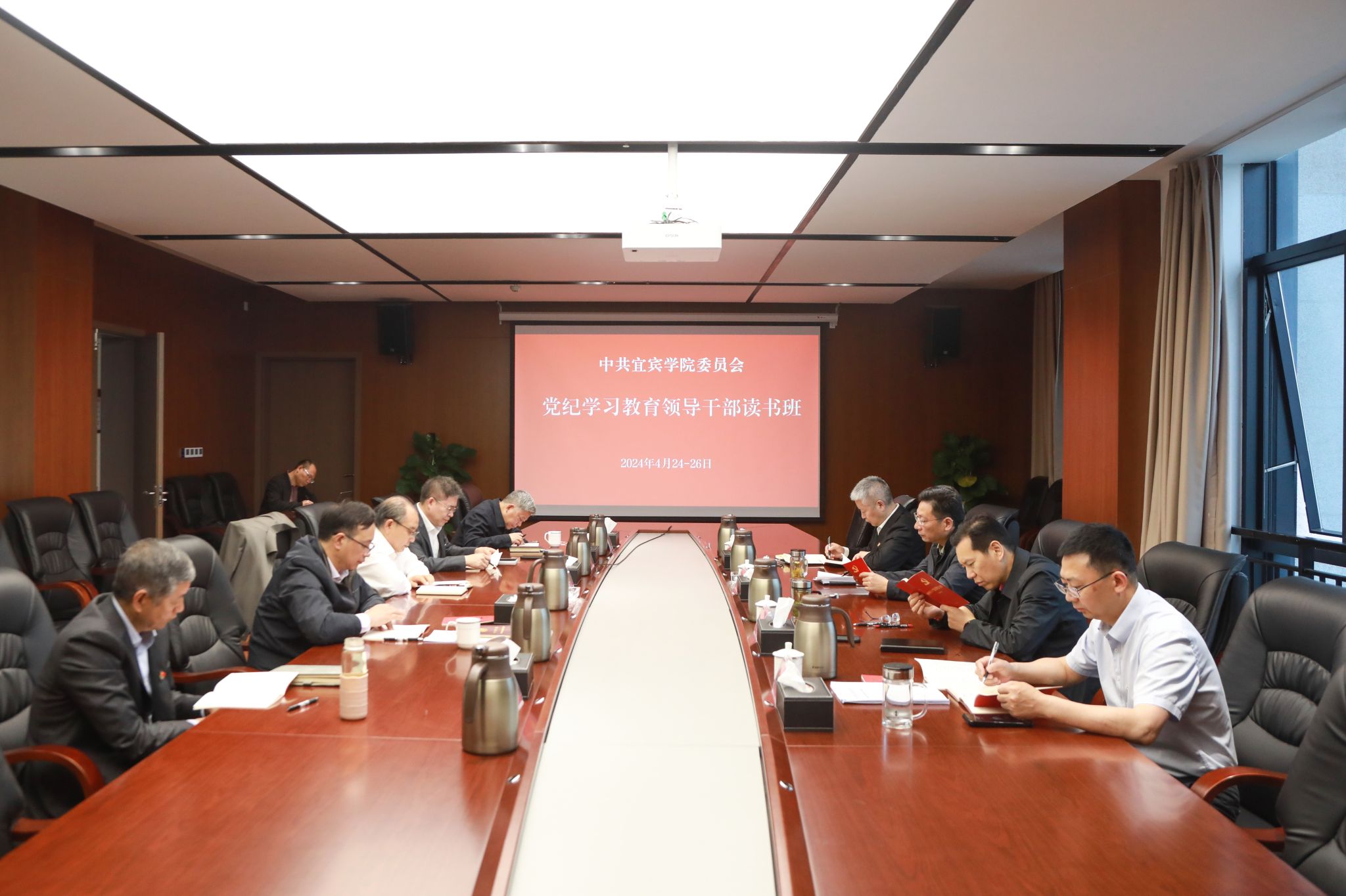 4月24日—4月26日,宜宾学院党纪学习教育领导干部读书班举行,深入学习贯彻习近平总书记关于党纪学习教育的重要讲话、重要指示精神和中央部署要求,认真学习新修订的《中国共产党纪律处分条例》,全体校领导、党委常委、党委委员、纪委委员、副处级以上党员领导干部(含处级专职组织员)参加。