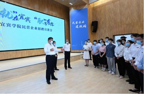 当习近平总书记走进宜宾学院招聘大厅时,民营企业招聘宣讲会正在举行。