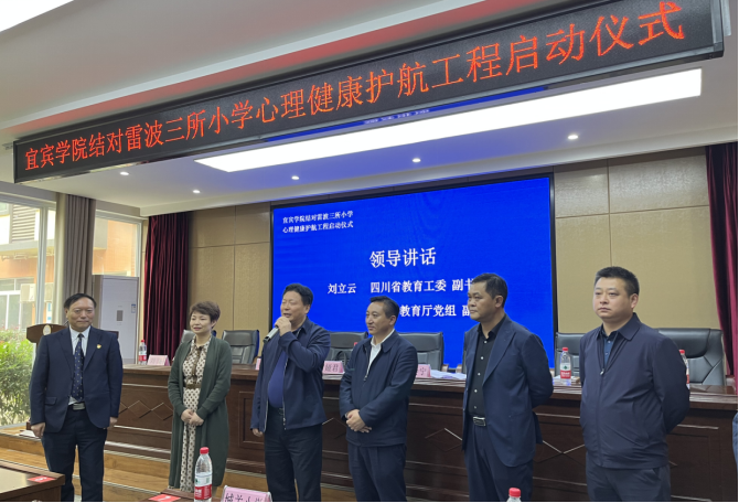 为进一步落实四川省教育工委关于宜宾学院对口帮扶雷波县城关小学、海湾小学和金沙小学的要求,5月27日-28日,宜宾学院结对雷波三所小学心理健康护航工程启动仪式暨“擎灯工程”服务雷波培训在雷波县城关小学锦屏校区举行。省委教育工委副书记、省教育厅党组成员刘立云,省教厅宣思处处长李大鹏,宜宾学院党委常委、副院长罗娅君,雷波县教育体育和科学技术局副局长杨贵平,宜宾学院教育学部党总支副书记刘薪(负责工作)、部长何会宁等参加启动仪式。启动仪式由何会宁主持。