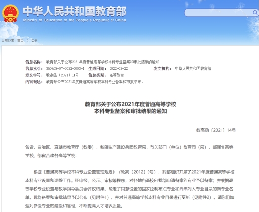 近日,教育部公布了普通高等学校本科专业备案和审批结果。经申报、公示、审核等程序,教育部对我校申请的“电气工程及其自动化”本科专业予以备案。