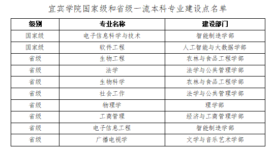 近日,教育部办公厅公布2021年度国家级和省级一流本科专业建设点认证结果,宜宾学院软件工程专业成功入选国家级一流本科专业建设点。截至目前,宜宾学院共有10个本科专业入选一流本科专业建设点,其中国家级一流本科专业建设点2个。