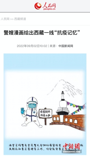 据悉,沈文静是西藏日喀则边境管理支队昌龙边境派出所教导员胡浩的妻子,作为一名警嫂于今年7月26日到西藏探亲,此后遭遇西藏疫情暴发。在派出所抗疫期间,沈文静拿起画笔,将奋战在抗疫一线的移民管理警察身影描绘记录下来,用漫画的方式生动再现西藏移民管理警察的战“疫”人物群像。