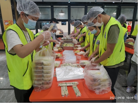 从宜宾市由于疫情防控需要紧急按下暂停键的第2天开始,学生志愿服务队开始招募志愿者。据负责临港校区食堂志愿服务工作招募的学生志愿者、来自农林学部大四的李纪春介绍,在校同学非常积极,招募志愿者事宜也得到了学校的大力支持,到目前为止学校疫情防控学生志愿服务队仅负责盒饭打包的志愿者就招募了近150名成员,这个数字还在上升,他们是来自农林与食品工程学部、人工智能与大数据学部、智能制造学部和国际应用技术学部等大二到大四的学生。