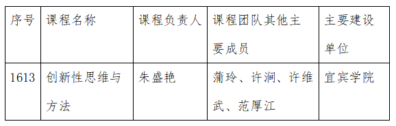 近日,教育部发布了《教育部关于公布第二批国家级一流本科课程认定结果的通知》(教高函〔2023〕7号),由宜宾学院教师朱盛艳、蒲玲、许涧、许维武、范厚江等申报的《创新性思维与方法》课程成功入选国家级线上线下混合式一流本科课程。