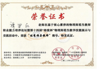 7月28-30日,基于核心素养的物理师范生教师职业能力培养论坛暨第十四届“格致杯”物理师范生教学技能展示与交流大赛在陕西理工大学成功举办。宜宾学院理学部选派6名学生分别参加物理课堂教学技能展示和创新实验设计与自制教具展评,荣获一等奖2项、二等奖2项、三等奖2项,学部青年教师汤莉、谭罗红分别荣获“优秀指导教师”称号。