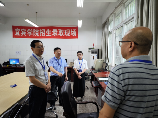 7月31日上午,宜宾学院党委副书记、院长杜正聪,党委常委、副院长周广均到本科招生录取工作现场调研指导工作,看望慰问暑期奋战在招生录取一线的工作人员。