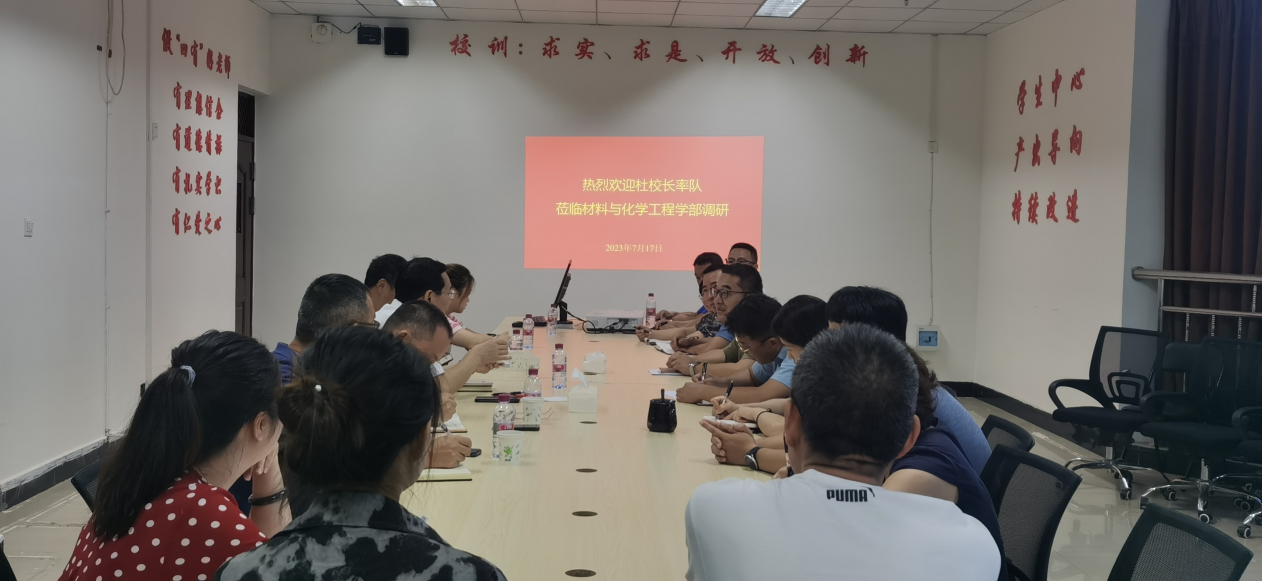 7月17日上午,宜宾学院党委副书记、院长杜正聪率队到材料与化学工程学部开展内涵式高质量发展主题调研。学校国有资产管理与实验室建设、人事处、计划财务处、党政办公室等职能部门负责人和相关人员陪同调研。
